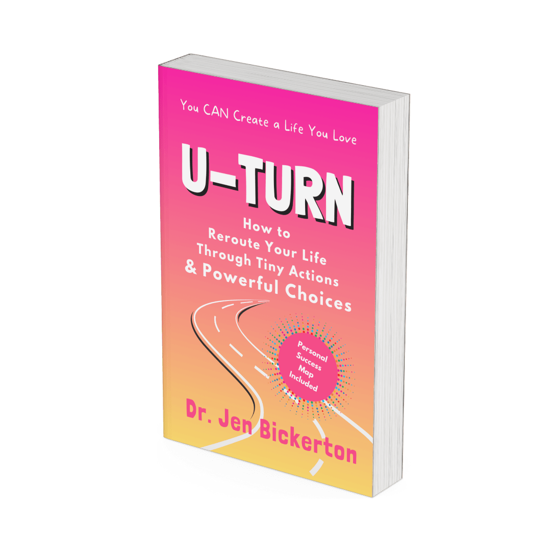 When you sign up to download the free Companion Workbook to U-TURN, you will also receive Dr. Jen's monthly newsletter with available upcoming events and workshops. Join her in an online workshop as she shares strategies she learned after documenting the patterns of her own struggles with chronic illness, low motivation, severe financial stress, and relationship difficulties. She will guide you on a new journey to redesign life the way you want it!